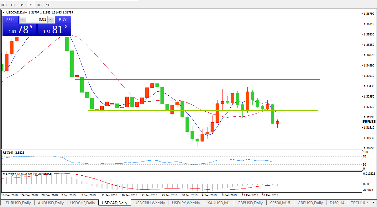美元兑加元跌至两周新低,触及1.3173,下破100日移动均线。