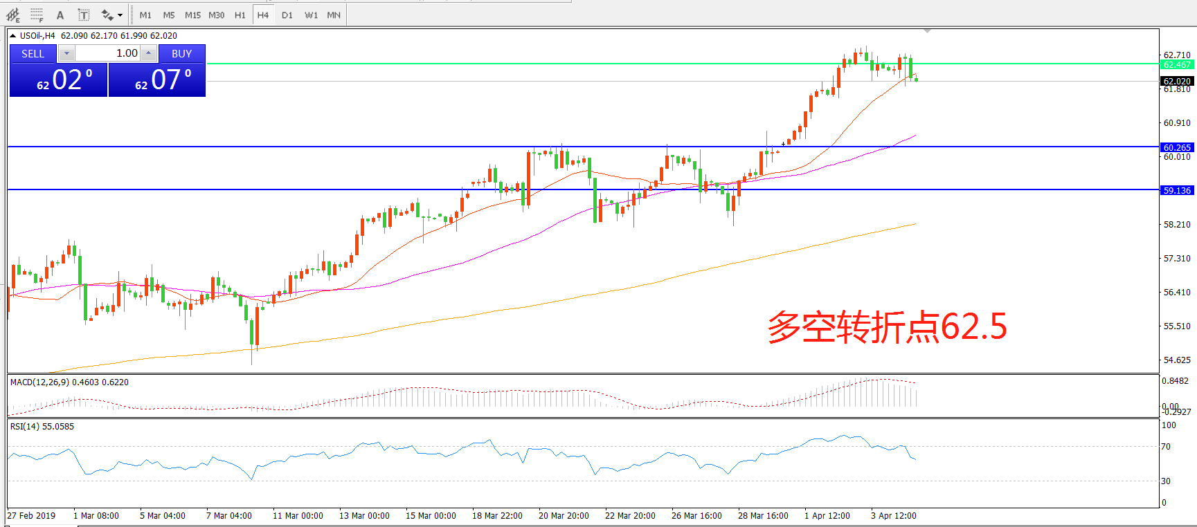 多空转折点:62.50