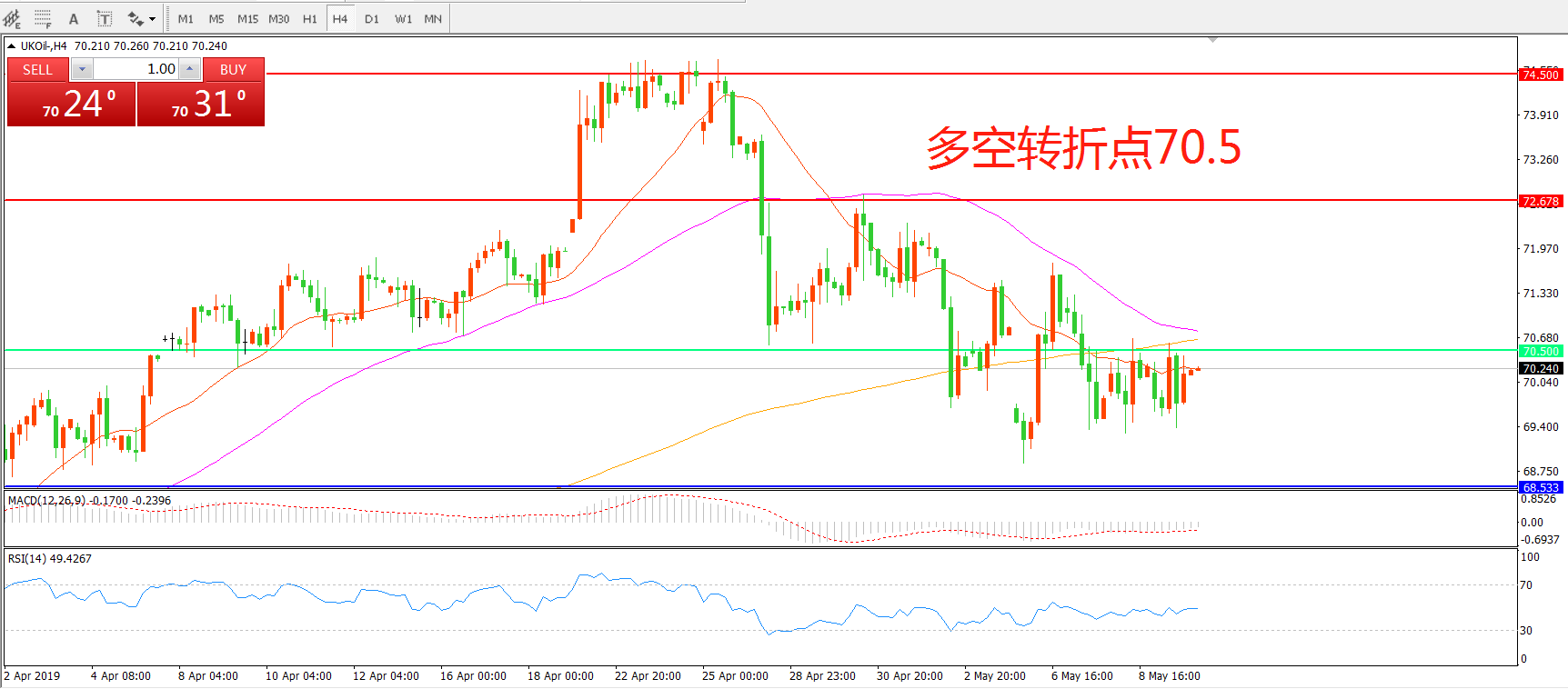 多空转折点:70.50