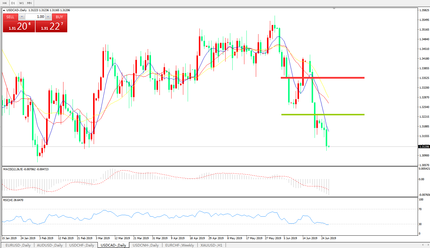 技术面简析:日线图均线有序空头排列价格整理后再度大跌MACD在0轴下方运行且动能柱加速放量RSI跌入超卖区域,预计汇价将进一步下行
