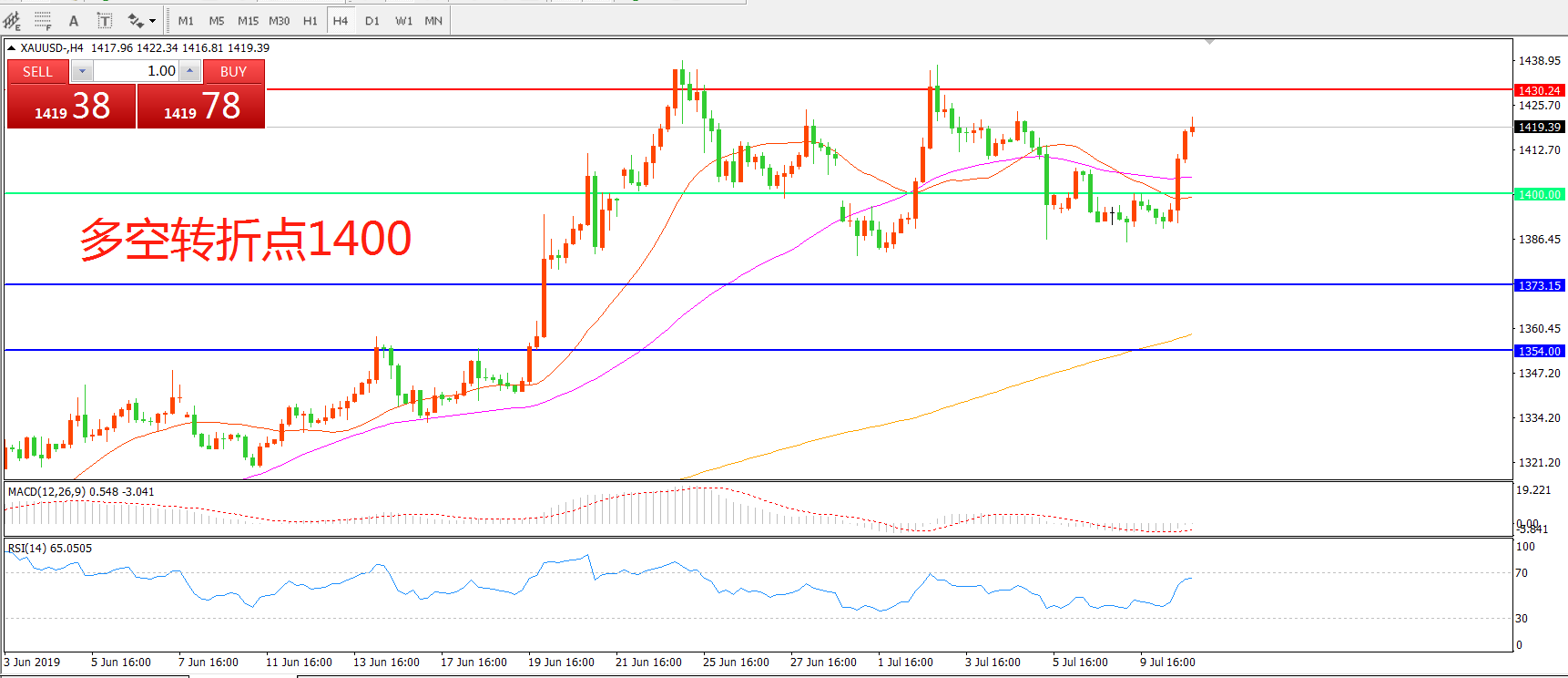 多空转折点:1400.00
