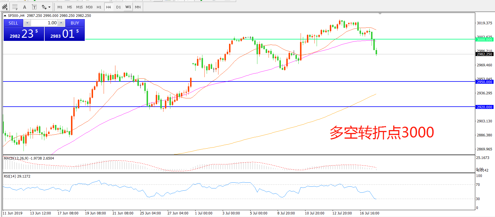 多空转折点:3000.00