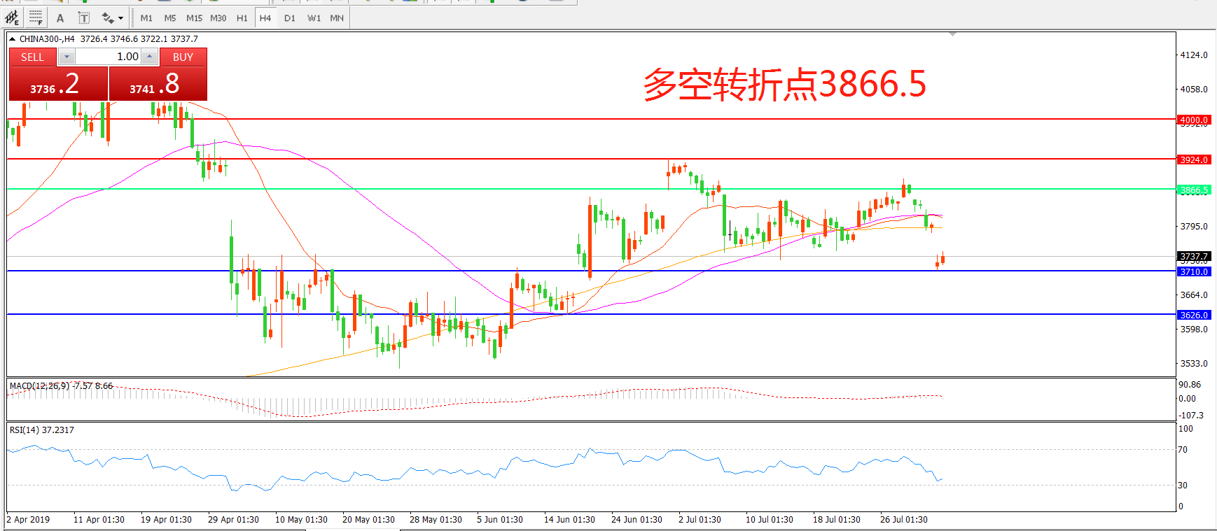 交易策略:在3866.50之下看跌,目标3710.00     3626.00