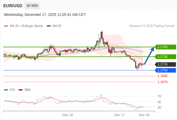 在 1.1700 之上,看涨,目标价位为 1.1735 ,然后为 1.1760 。