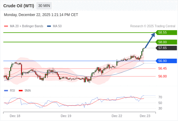在 56.90 之上,看涨,目标价位为 58.00 ,然后为 58.55 。