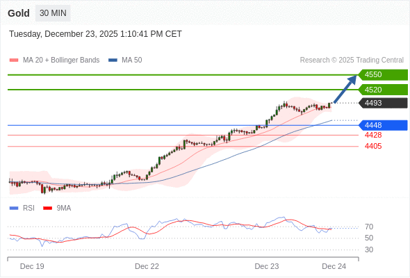 在 4448 之上,看涨,目标价位为 4520 ,然后为 4550 。