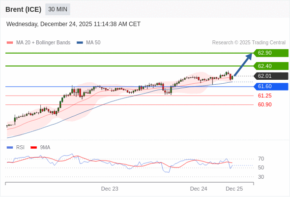 在 61.60 之上,看涨,目标价位为 62.40 ,然后为 62.90 。