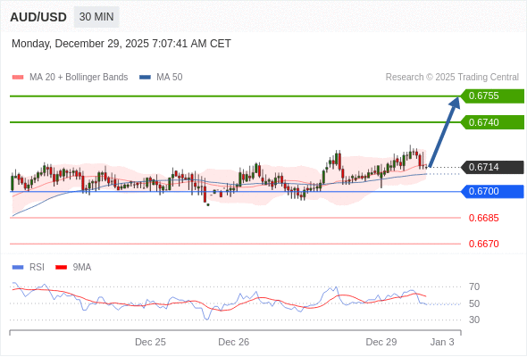在 0.6700 之上,看涨,目标价位为 0.6740 ,然后为 0.6755 。
