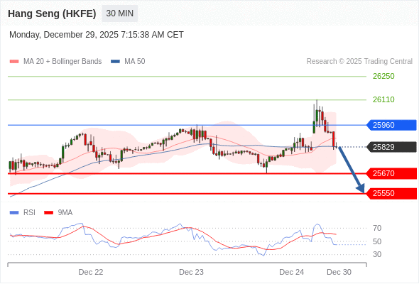 在 25960 之下,看跌,目标价位为 25670 ,然后为 25550 。