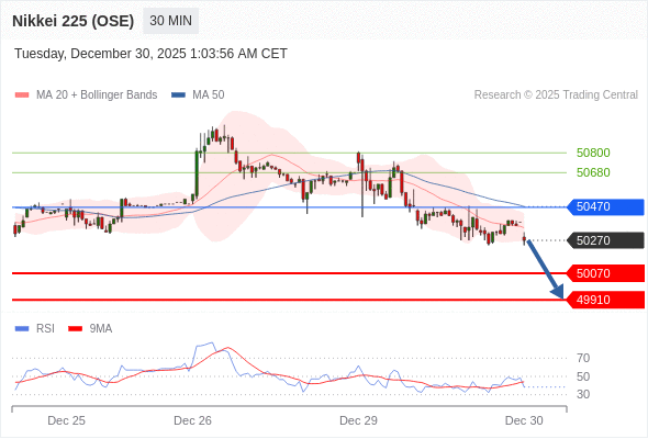 在 50470 之下,看跌,目标价位为 50070 ,然后为 49910 。