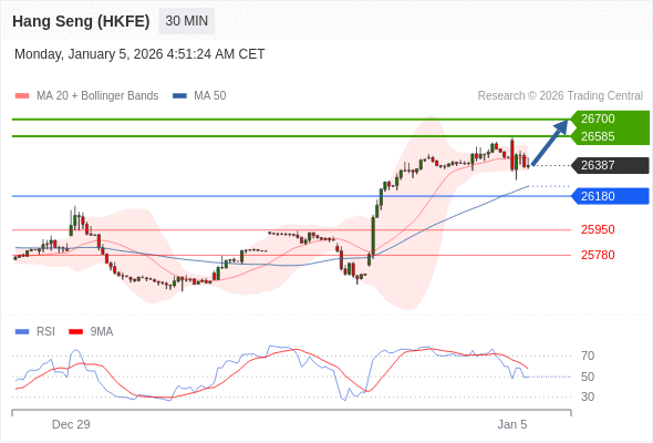 交易策略: 在 26180 之上,看涨,目标价位为 26585 ,然后为 26700 。