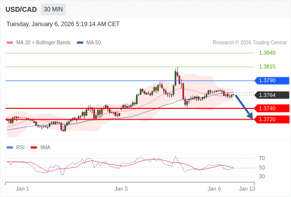 在 1.3790 之下,看跌,目标价位为 1.3740 ,然后为 1.3720 。