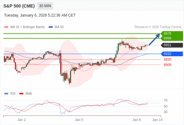 在 6932 之上,看涨,目标价位为 6965 ,然后为 6975 。