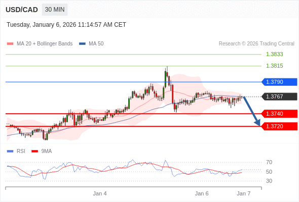 在 1.3790 之下,看跌,目标价位为 1.3740 ,然后为 1.3720 。