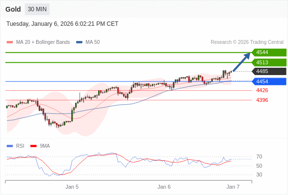 在 4454 之上,看涨,目标价位为 4513 ,然后为 4544 。