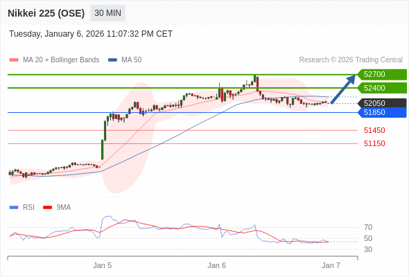 在 51850 之上,看涨,目标价位为 52400 ,然后为 52700 。
