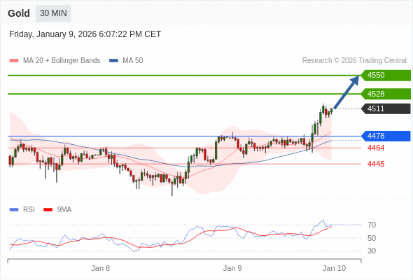 在 4478 之上,看涨,目标价位为 4528 ,然后为 4550 。