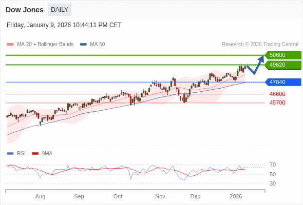 Dow Jones 短线: 在47840之上,看涨。