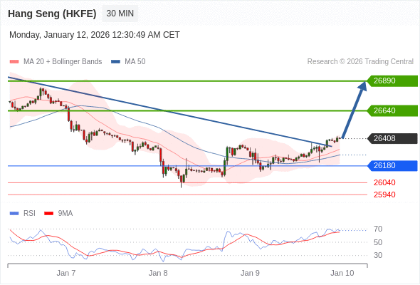 在 26180 之上,看涨,目标价位为 26640 ,然后为 26890 。