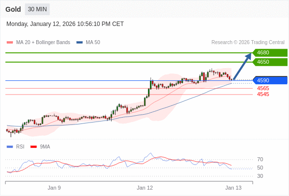 在 4590 之上,看涨,目标价位为 4650 ,然后为 4680 。