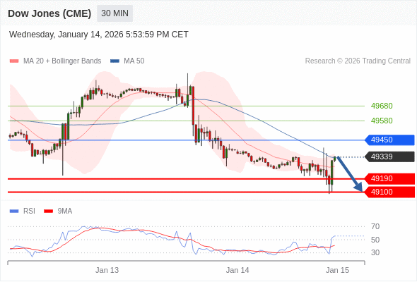 在 49450 之下,看跌,目标价位为 49190 ,然后为 49100 。
