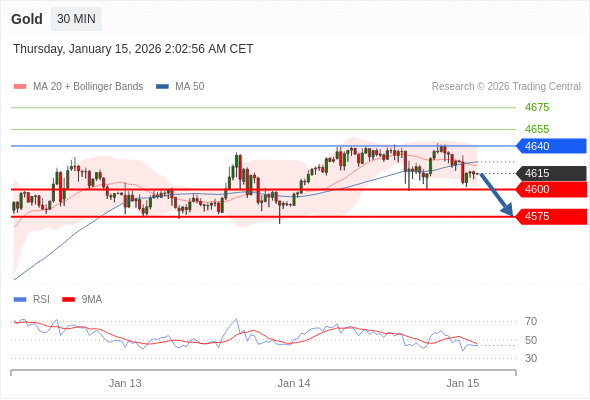 交易策略: 在 4640 之下,看跌,目标价位为 4600 ,然后为 4575 。