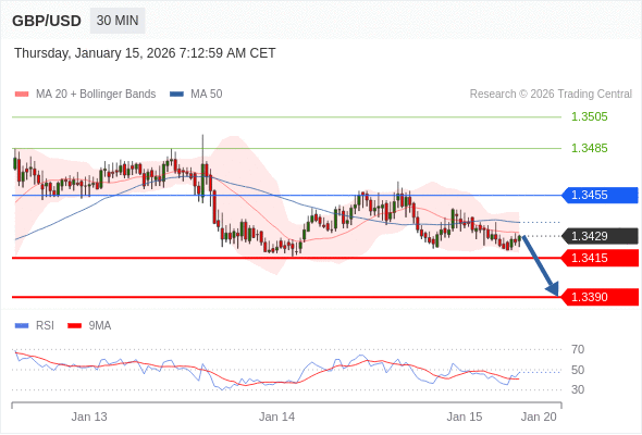 在 1.3455 之下,看跌,目标价位为 1.3415 ,然后为 1.3390 。