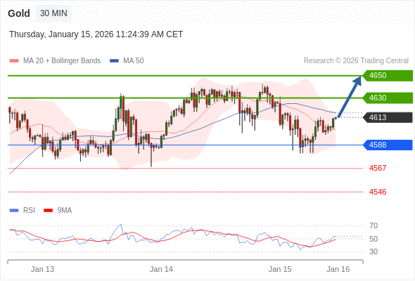在 4588 之上,看涨,目标价位为 4630 ,然后为 4650 。