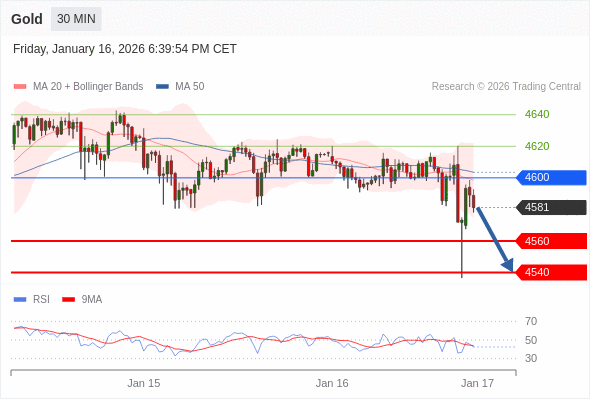 在 4600 之下,看跌,目标价位为 4560 ,然后为 4540 。