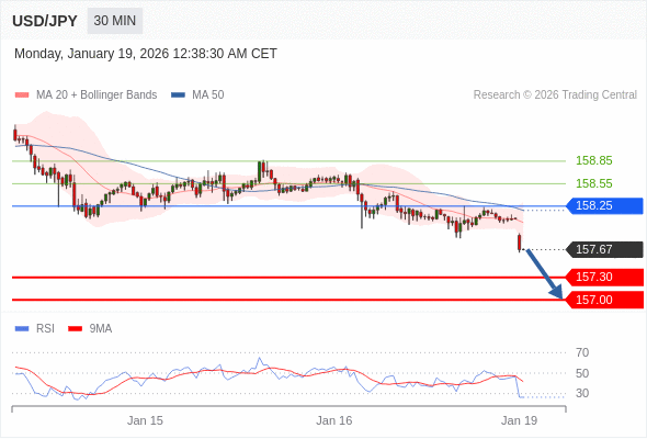 交易策略: 在 158.25 之下,看跌,目标价位为 157.30 ,然后为 157.00 。