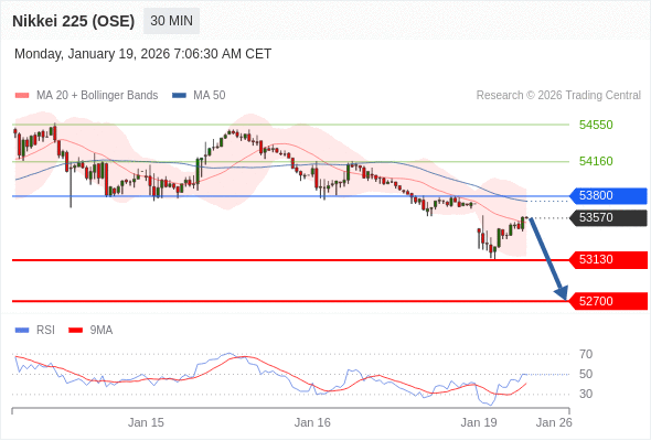 在 53800 之下,看跌,目标价位为 53130 ,然后为 52700 。