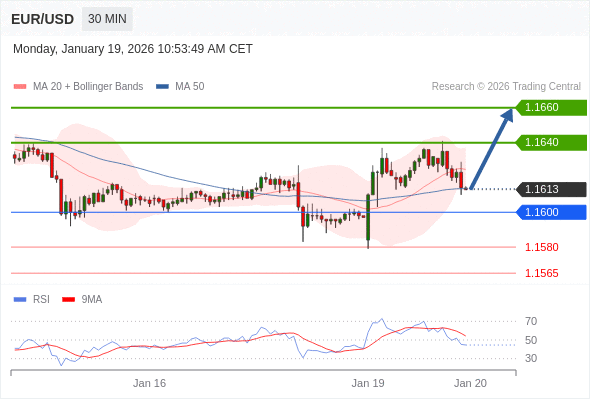 交易策略: 在 1.1600 之上,看涨,目标价位为 1.1640 ,然后为 1.1660 。