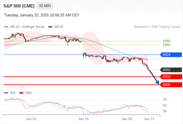 美国标普500指数期货 (H6) 当日内: 目标位为6800。