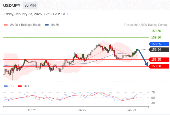 交易策略: 在 158.85 之下,看跌,目标价位为 158.25 ,然后为 158.00 。
