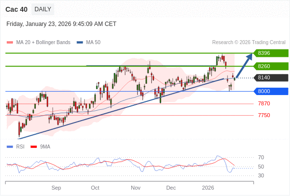 交易策略: 在 8000 之上,看涨,目标价位为 8260 ,然后为 8396 。