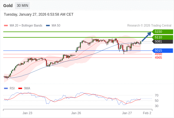 在 5015 之上,看涨,目标价位为 5110 ,然后为 5150 。