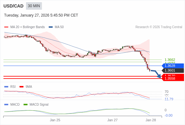 交易策略: 看跌,在 1.3628 之下。