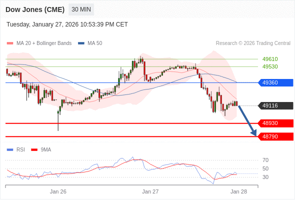 在 49360 之下,看跌,目标价位为 48930 ,然后为 48790 。