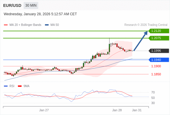 在 1.1940 之上,看涨,目标价位为 1.2075 ,然后为 1.2120 。