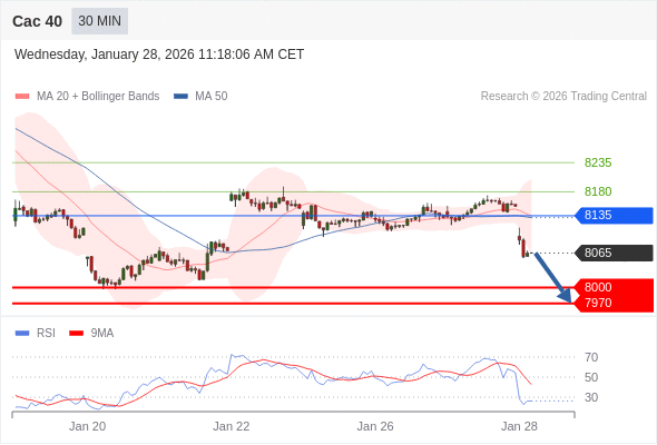 Cac 40 当日内: 存在压力。