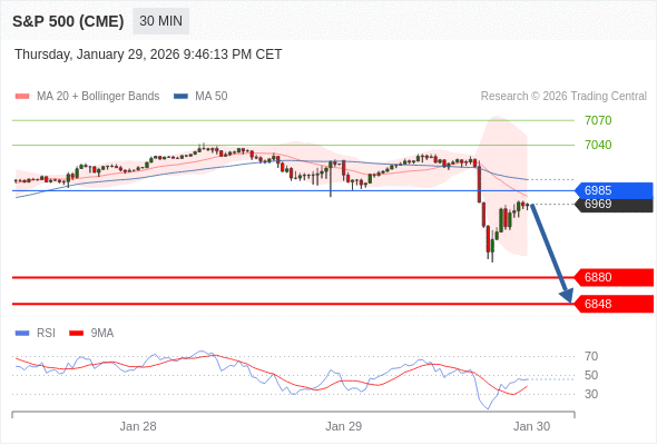 在 6985 之下,看跌,目标价位为 6880 ,然后为 6848 。