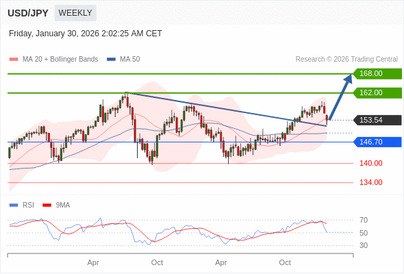 在 146.70 之上,看涨,目标价位为 162.00 ,然后为 168.00 。