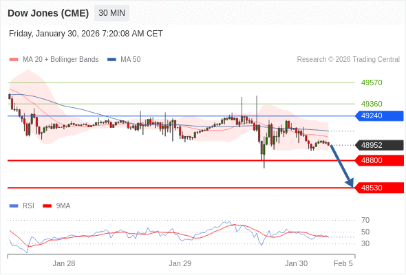 在 49240 之下,看跌,目标价位为 48800 ,然后为 48530 。