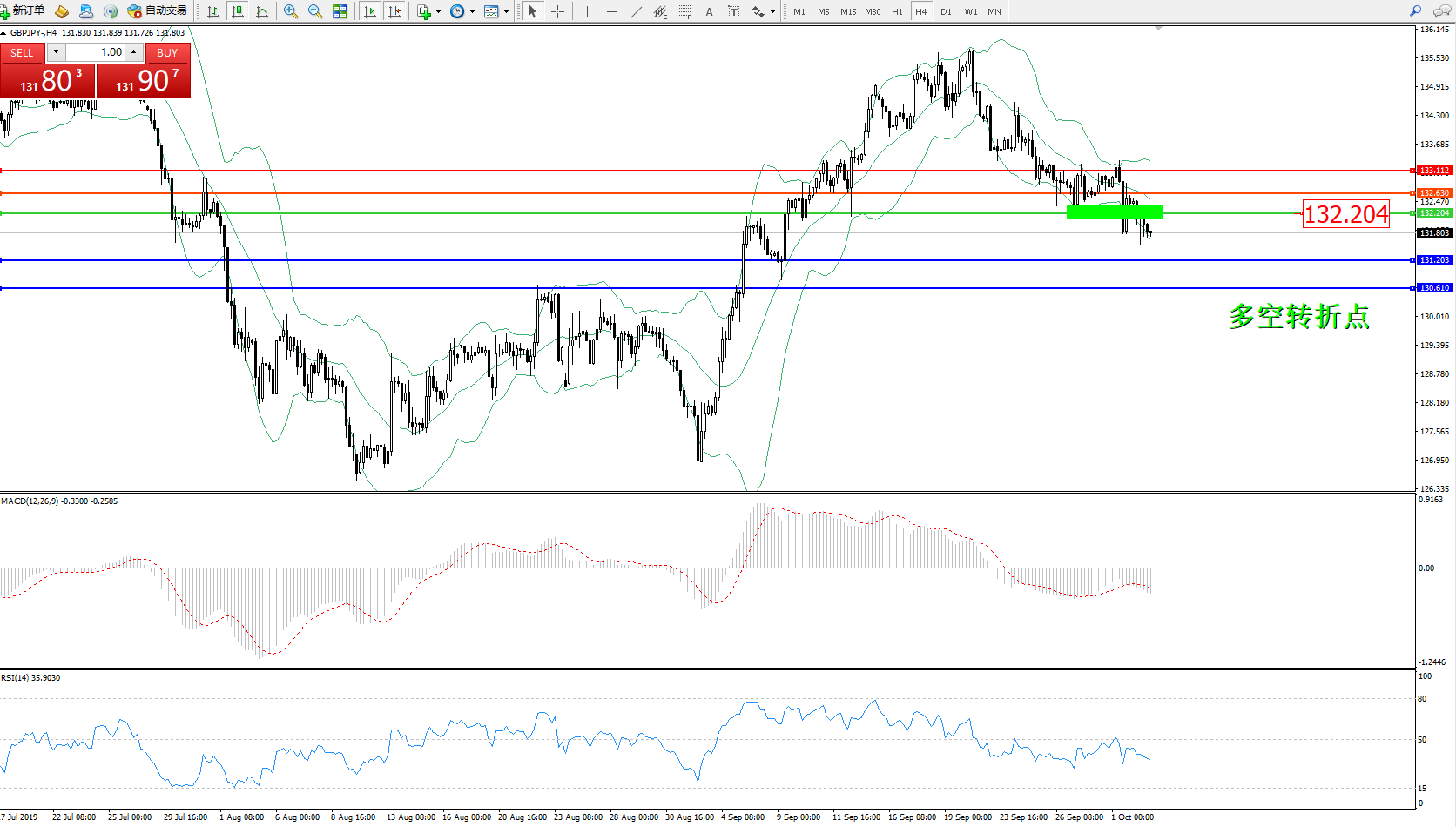 交易策略:132.204下方看跌,目标131.203130.610