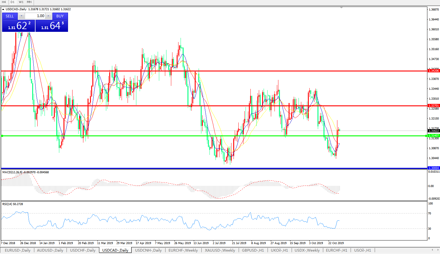 美元兑加元USDCAD 日线图: