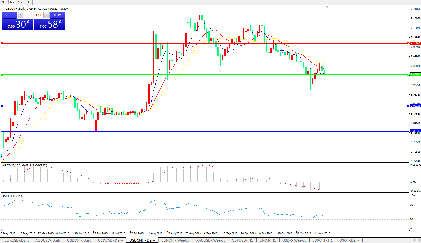 交易策略: 在7.0000之上,看涨,目标价位为7.1000,然后为7.2000。