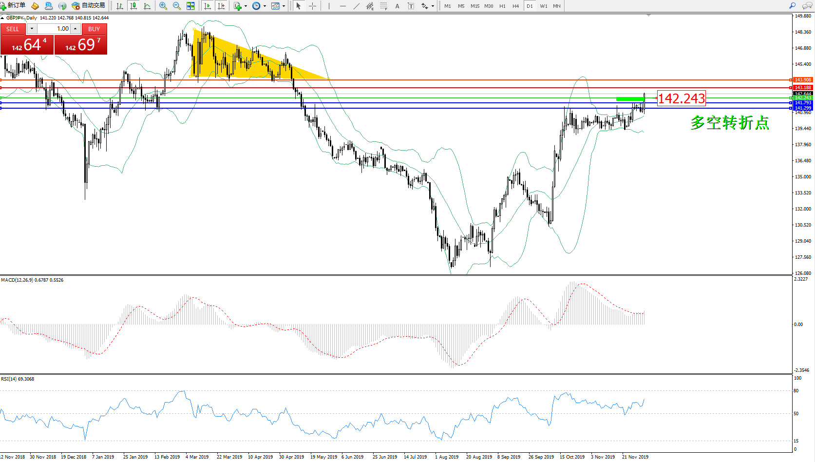 交易策略:142.243上方看涨,目标143.188、143.908
