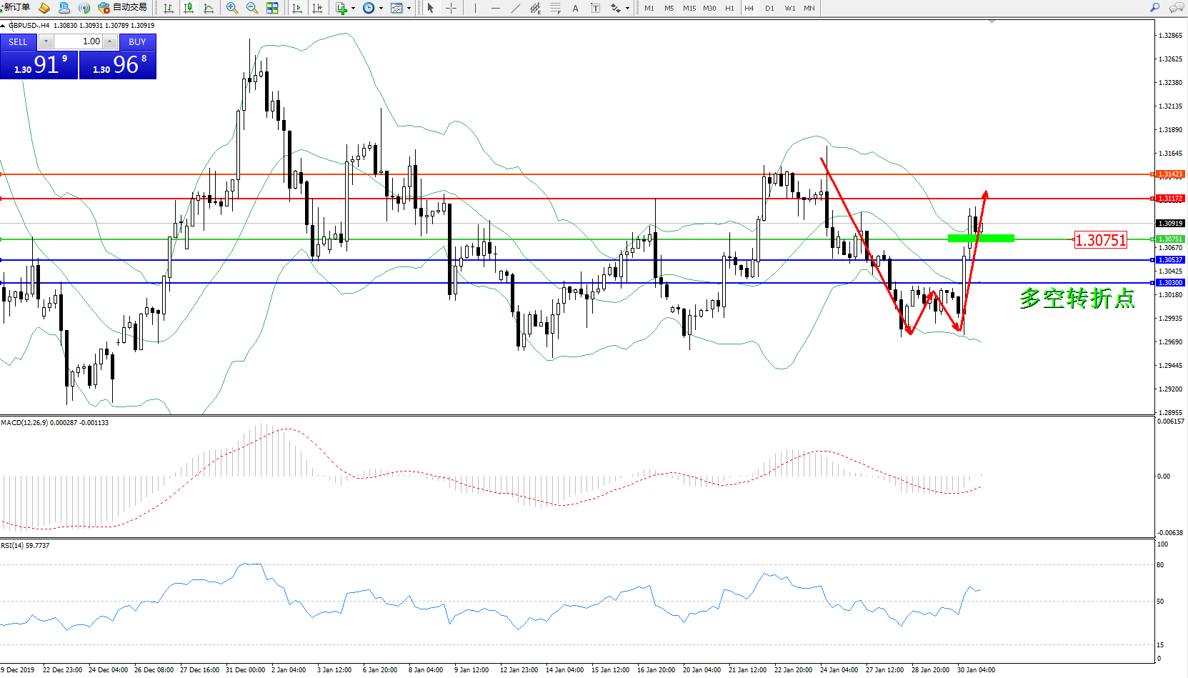 交易策略:1.30751上方看涨,目标1.311721.32423