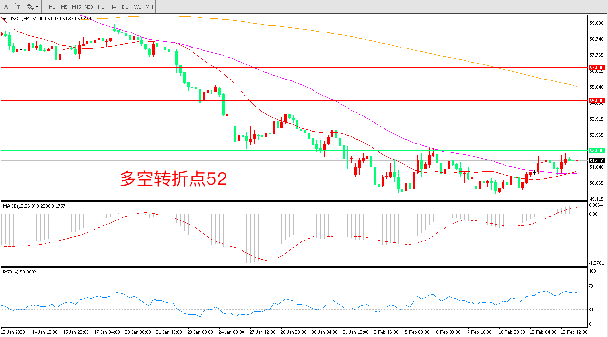 周四(2月13日),OPEC将2020年原油需求预估下调20万桶/日,而市场中有消息传出,俄罗斯已经暗示支持OPEC+ 进一步减产,这引发了OPEC可能进一步减产的预期。多空交织下,美国WTI原油延续震荡,收报51.48美元/桶。