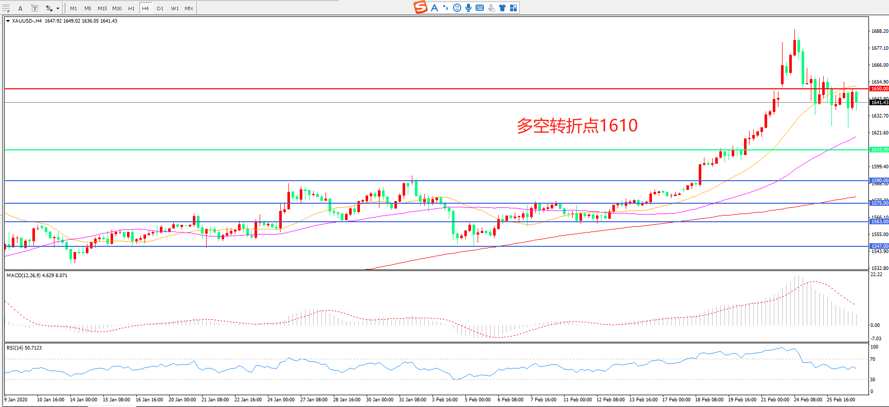 交易策略:在1610.00之上看涨,目标1650.00   1700.00